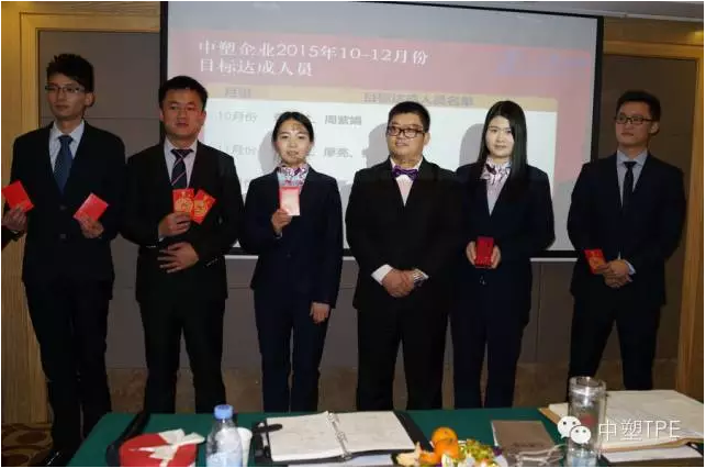會議最后,對2015年第四季度業(yè)績達標人員進行獎勵,并對2015年年度業(yè)績前三名的銷售人員進行隆重獎勵。